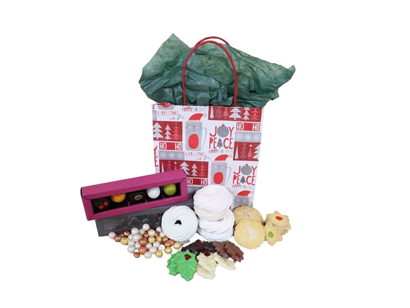 Klein kerstpakket met de volgende inhoud:
