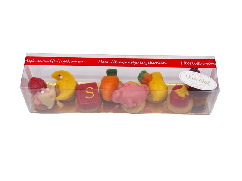 Mooie Marsepein sinterklaasfiguren op een bitterkoekje mooi verpakt in een doosje. En om het af te maken gaat er straks nog een strik om heen en een kerstkaart eraan!